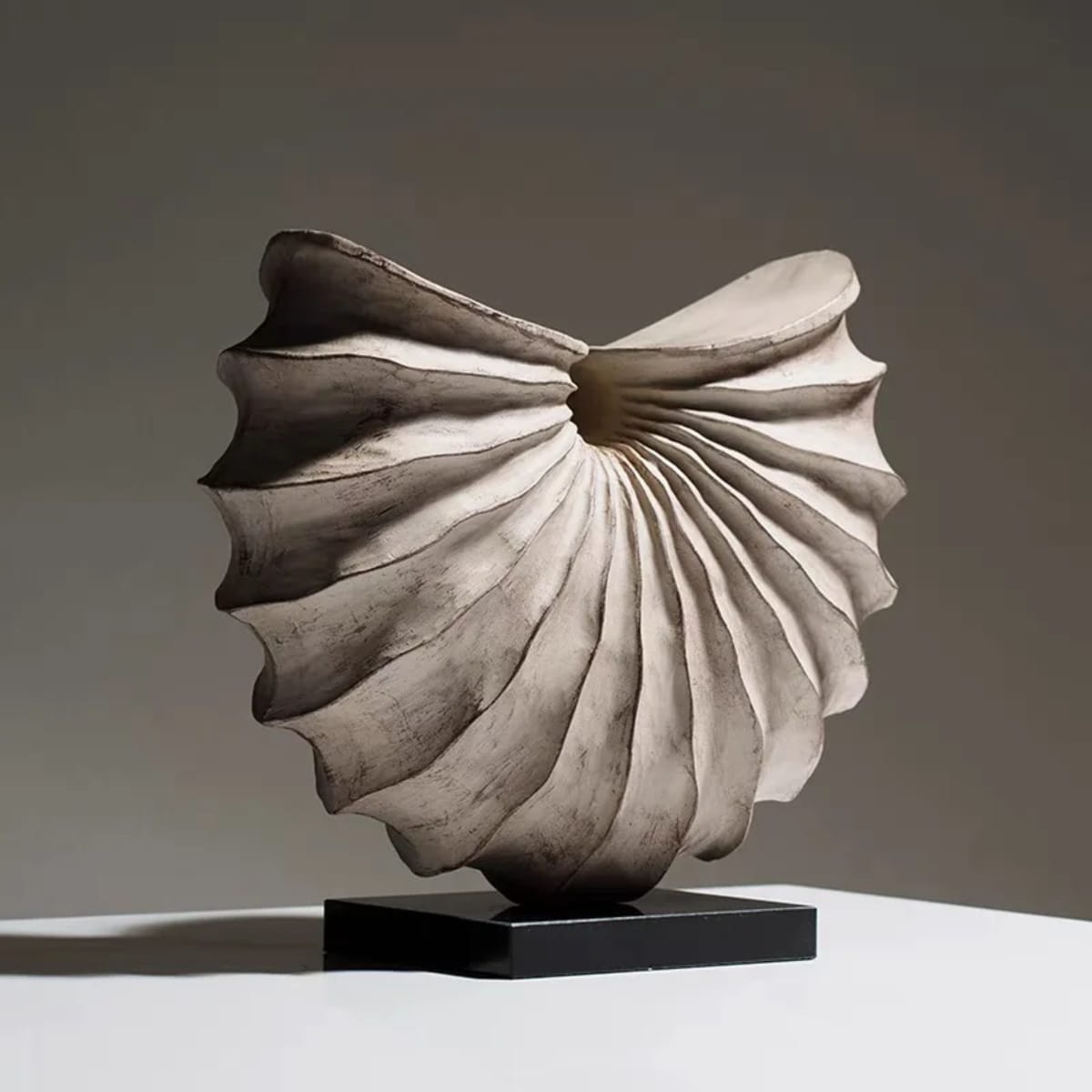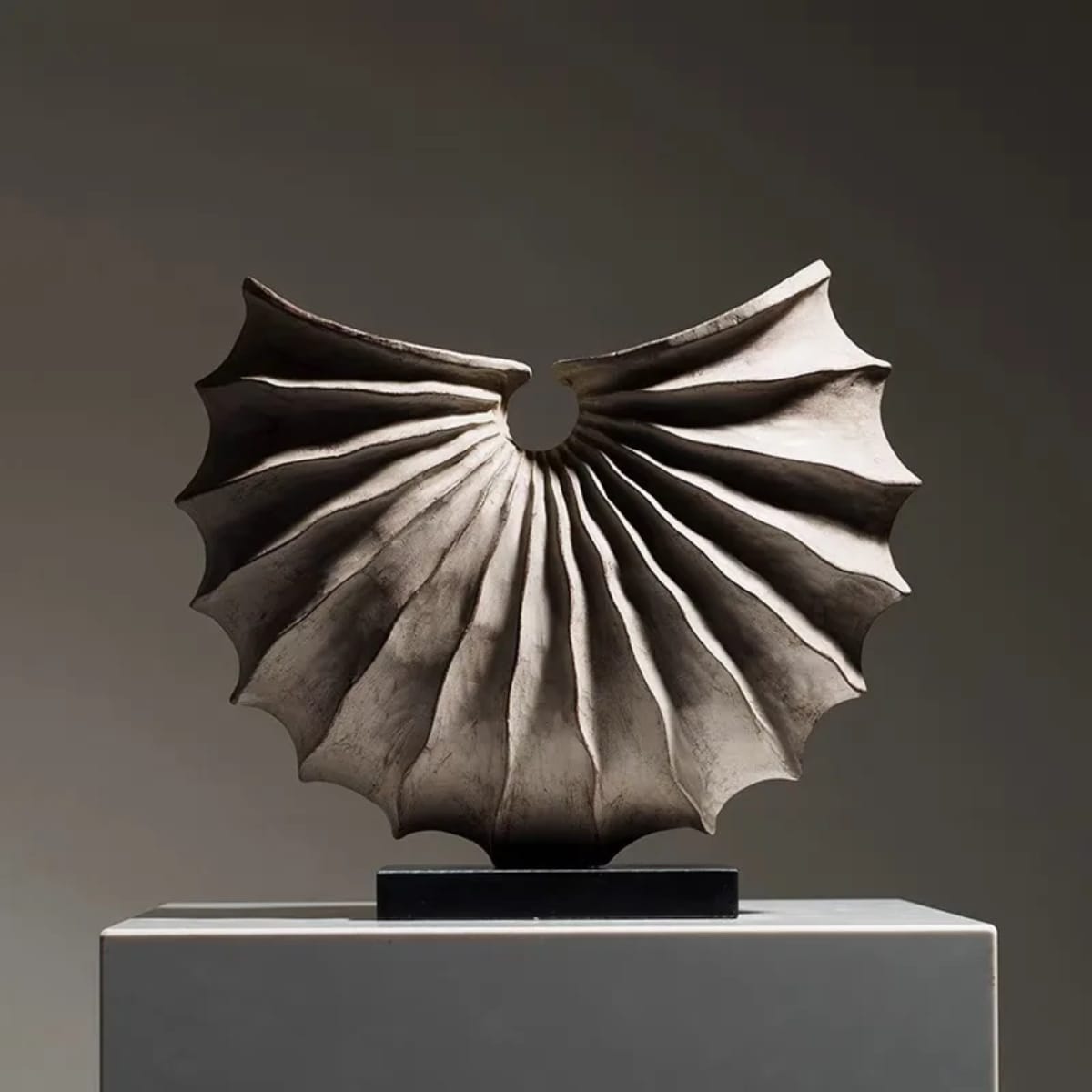 Make a bold yet elegant statement with this Abstract Wooden Sculpture, designed to resemble a flowing, organic shell form. Its sculptural curves and textured surface create a sense of movement, making it a striking centerpiece for any room.