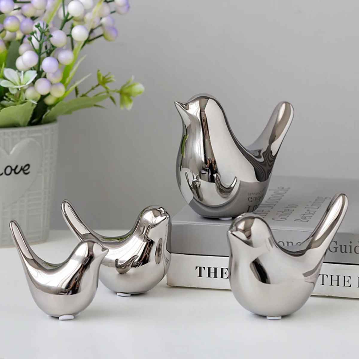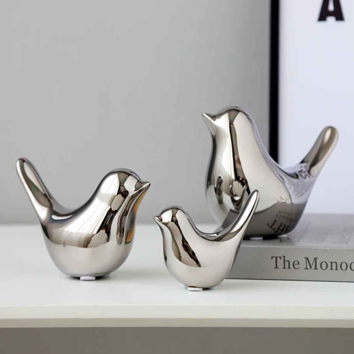 Add a touch of elegance to your home with these modern silver bird figurines. Featuring a sleek, reflective chrome finish, these decorative birds bring a calm, minimalist charm to shelves, desks, or coffee tables. Perfect for modern and Scandinavian-inspired spaces, they make a beautiful statement alone or as a set.