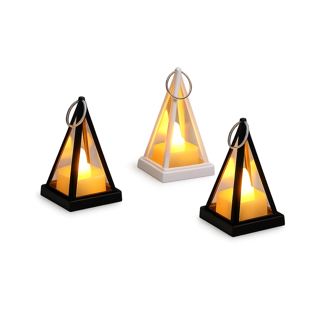 Add a cozy glow to your space with this Mini LED Candle Lantern. Designed with a stylish triangular frame and warm flickering LED candle, this decorative lantern creates a relaxing ambiance for bedrooms, living rooms, or special occasions.