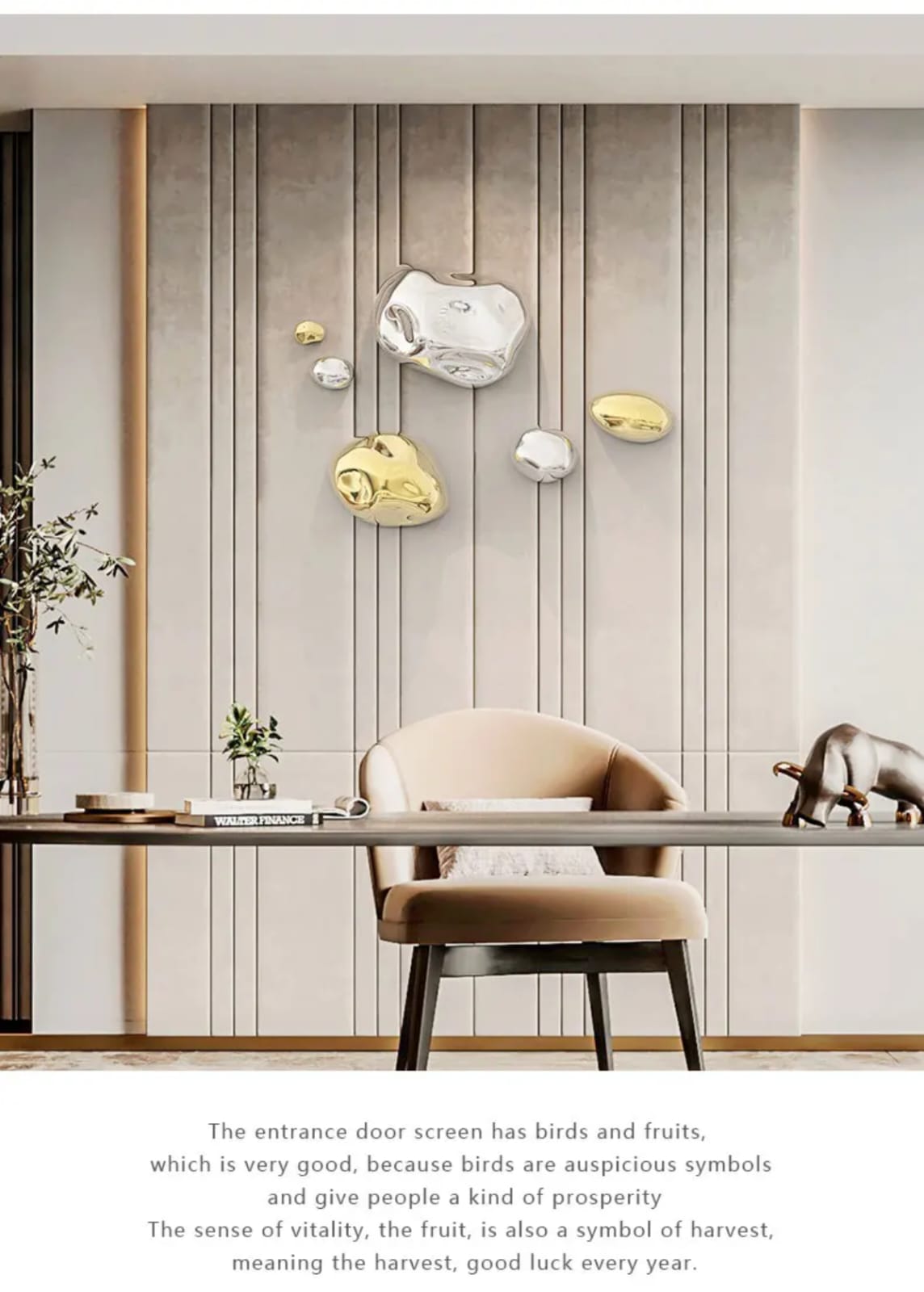 Bring modern elegance to your home with this Abstract Metallic-Look Wall Art Decor. Designed with smooth, fluid shapes and finished in stunning gold and silver tones, it creates a high-end aesthetic while remaining lightweight and easy to install.