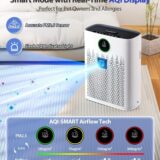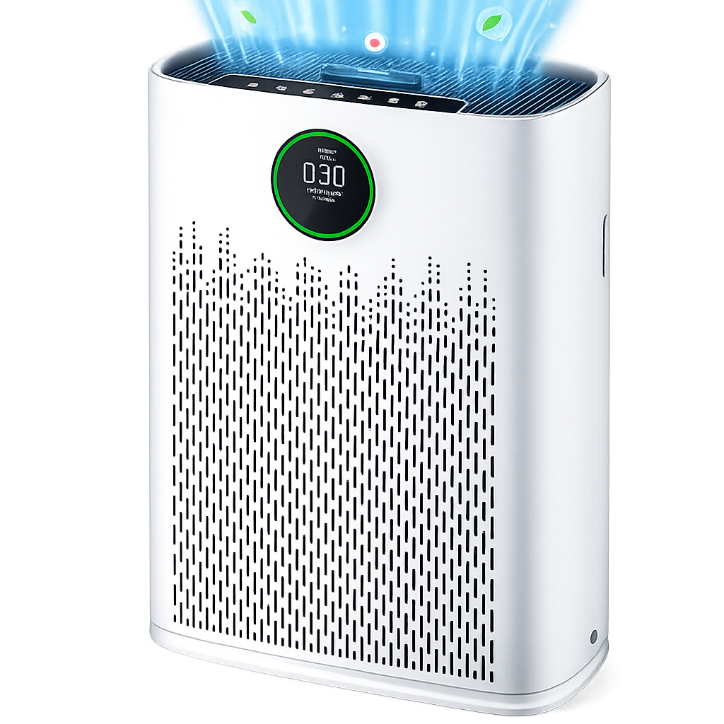 Improve the air quality in your home with this Smart HEPA Air Purifier, designed with an advanced 3-stage filtration system and real-time PM2.5 air quality monitoring. It captures 99.97% of airborne particles as small as 0.3 microns, including dust, pollen, smoke, pet dander, and allergens. With 360° airflow, ultra-quiet sleep mode, smart touch controls, and aromatherapy support, this purifier keeps your living space fresh,clean, and comfortable.